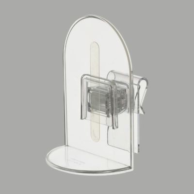 背面のクリップをこぼれ止めワイヤーなどに取り付けられクロスMD用ボックスです。什器の前面へ商品をアピールできます。