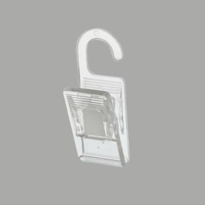 透明クリップ付のフックです。小物商品やサンプルを展示するのに便利なフックです。