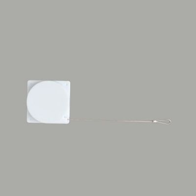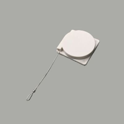 【入数】1個 【サイズ】本体:W35xH35xD10mmコード長さ:800mm 【材質】本体:ABS樹脂ワイヤー:コートタイプ 【カラー】白 【その他】本体固定方法:裏面に両面テープを貼り、紙製什器に直貼り。ネジで固定の場合はビス穴3か所にM3×8を推奨いたします。 (裏面に両面テープは付いておりません)
