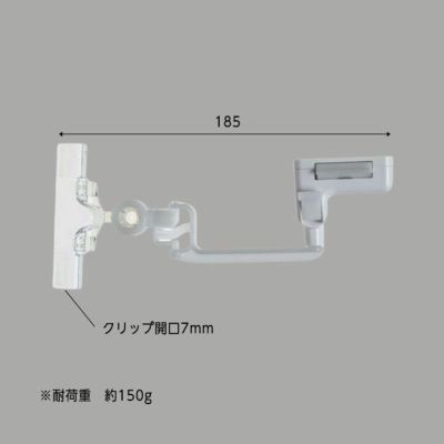 【入数】2個 【サイズ】全長:185mm クリップ開口:7mm 【仕様】耐荷重:約150g クリップ1箇所とアーム2箇所は角度調整が可能