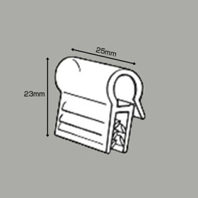 【入数】10個 【サイズ】W25×H23mm 【仕様】カード厚2mm厚までの素材に対応。ワイヤー什器のほか、板状の素材にも取付できます。 【材質】ポリ塩化ビニル樹脂