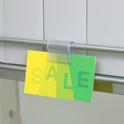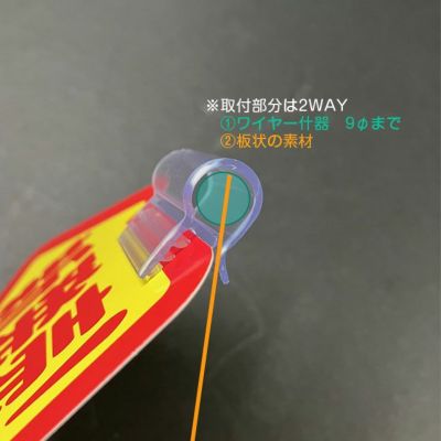 ワイヤー什器のトップレール・板状の素材に取り付けられる2WAY仕様のサインホルダーです。Φ9までのワイヤーに取り付けできます。 サインホルダー部分はスーパーグリップ使用で、サインを差しやすく、取れにくい仕様です。厚さ2mmのものまでお使いいただけます。