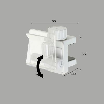【入数】1個 【サイズ】W34×H57×D33mm クリップ:厚さ7mmまで対応可 クランプ(締め具)部最大開口:40mm 【仕様】クランプ内側部分、滑り止めラバー付き 【材質】本体:ABS樹脂 クリップ:アクリル 【その他】 同商品Lサイズはこちら(商品番号12973)