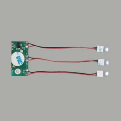 ボタン電池式の小型点滅LED。 100mm配線が伸びており、LED球の位置を自由に貼り付けることができます。