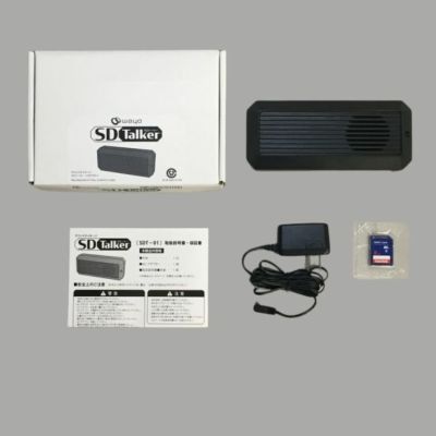 【入数】1個 【セット内容】SDカード(16GB)付き 【サイズ】本体外形寸法:W172×H72×D41.5mm 本体重量:185g 【仕様】音量調節:32段階ボタン式±調整 使用温度範囲:+5℃~+40℃ メモリー:SDカード、SDHCカード 【材質】ABS樹脂 【カラー】黒 【その他】・ループ再生と人感センサー再生の切り替え可能 ・複数の音声ファイル(Wav)を再生できます(最大100ファイル) ・感染症対策アナウンスの音源がございます。ご希望のお客様はご注文時にご連絡ください。